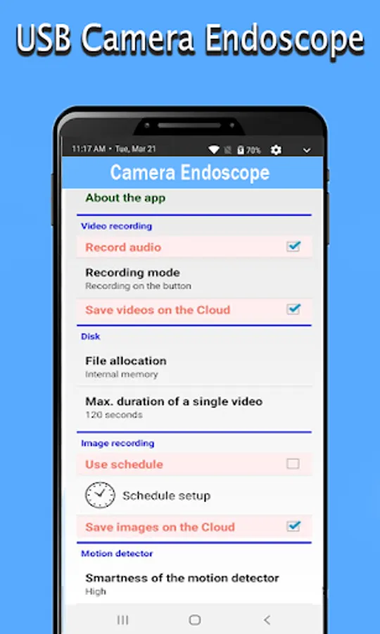 Users can view the videos in Android devices and can capture images (JPG) or HD videos (MP4) in 720P high definition with this endoscope app for android phones.