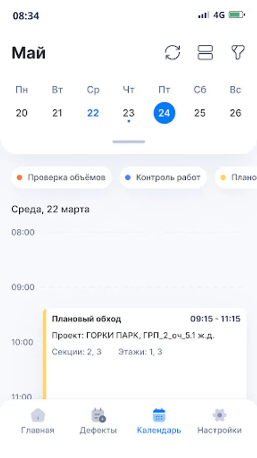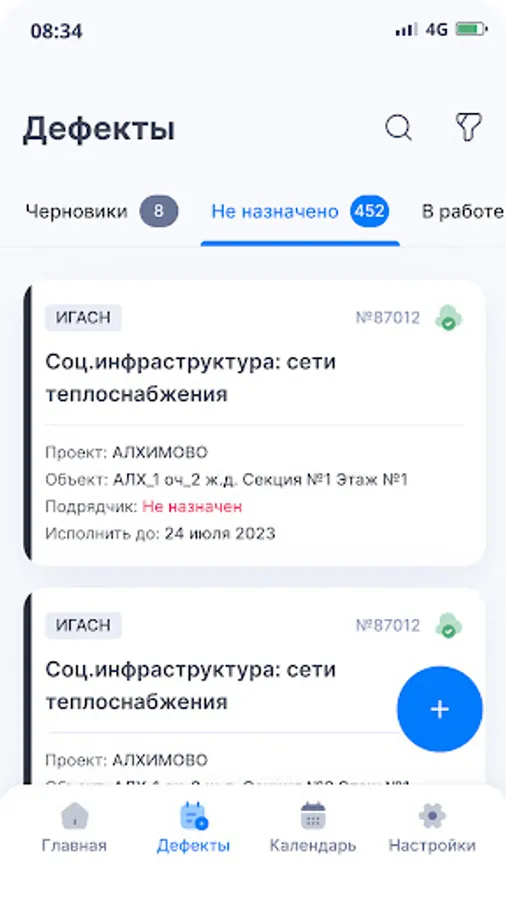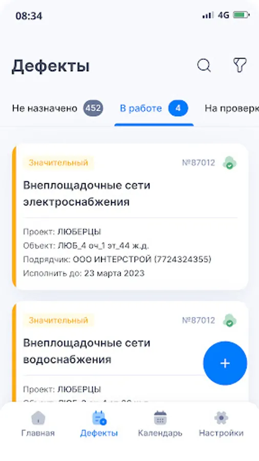 The mobile application is intended for employees of Samolet Development, who control the quality of construction and installation works and contractors. The main objective of the application is to provide supervisors and contractors with a convenient tool for fixing, correcting and checking all defects at construction sites. The application allows you to make a photo and video fixation of the defect.