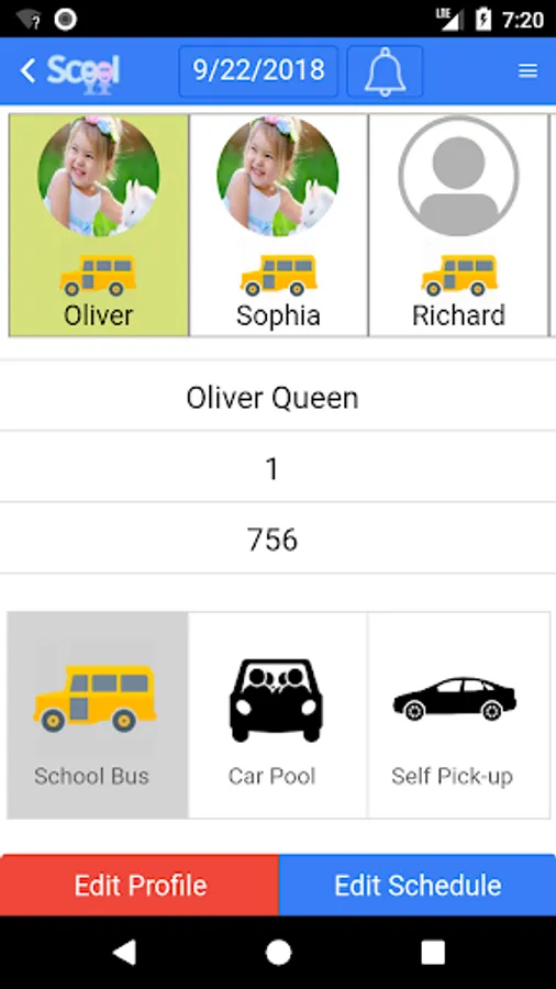 3. Will be able to change the transport mode between school bus, car-pool and self-pickup modes and communicate with the school admin/staff, receive notifications about bus departures and delays if any;