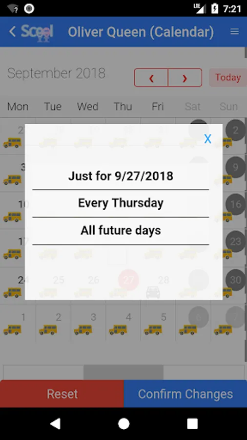 2. Will be able to set the transport modes (School Bus/Car Pool/Self-pickup) for their children for the entire calendar year.