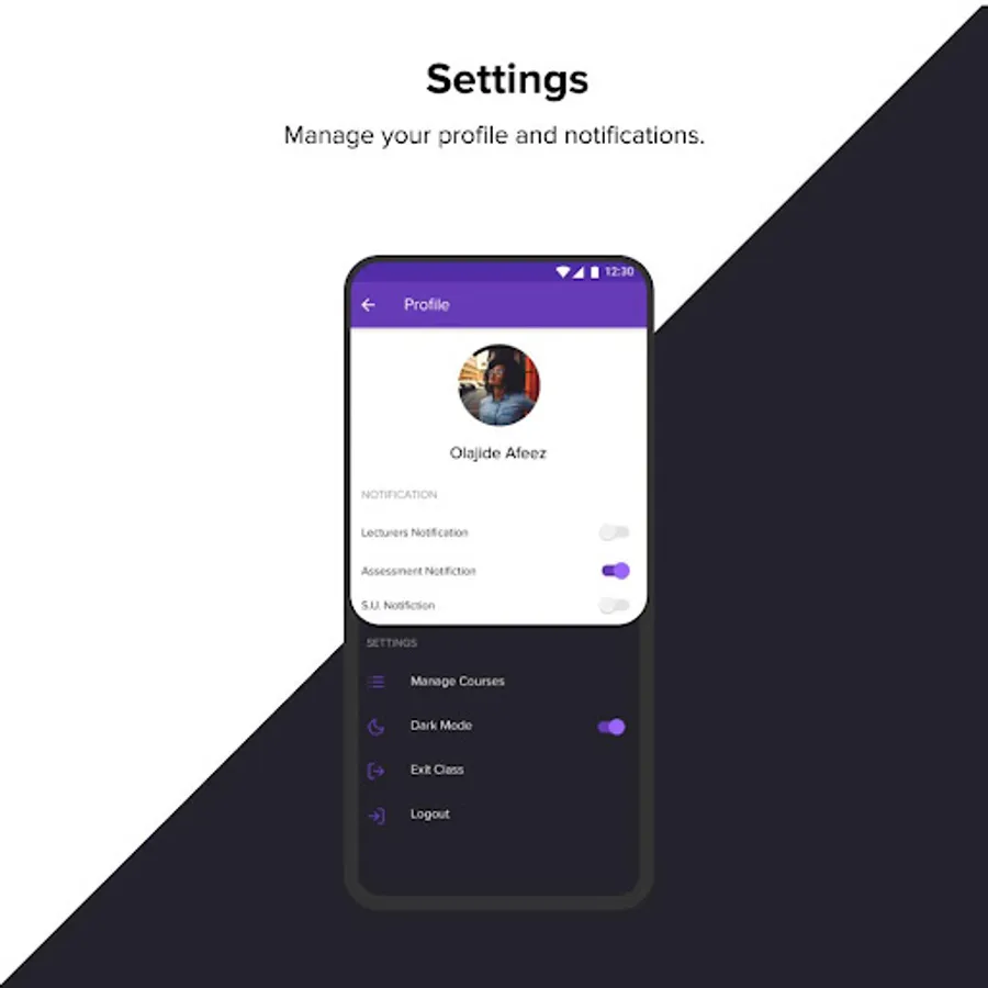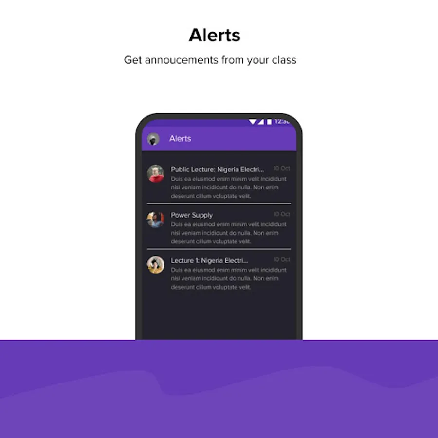 Additionally, in a bid to keep students organized, MyClass is developed with an automatic notification system which gives a reminder every night ahead of the next day's lectures and another one every ten minutes to lecture start time.