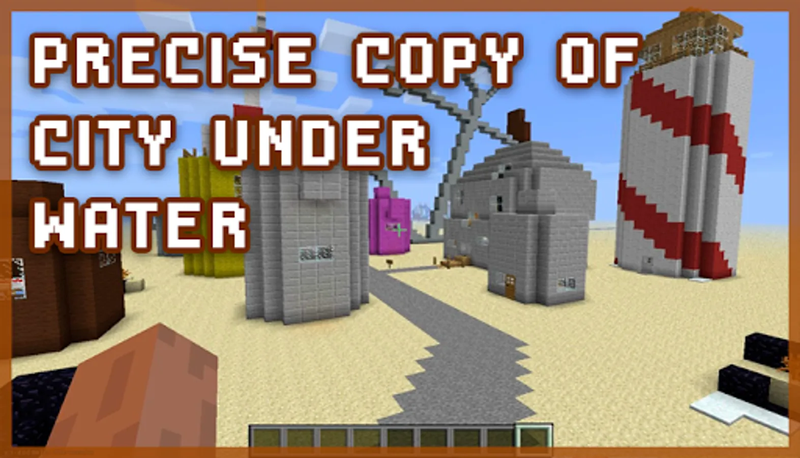 Mod Bikini Bottom for Minecraft is adding SpongeBob to your game! We all know the city of Bikini Bottom, where such a famous character as Sponge Bob lives. In this mod for Minecraft PE, you can explore all corners of the famous city "Bikini Bottom", enter to every house and see where Sponge Bob works and lives, visit to the Krasti's restaurant, Krabs office, look at shops and houses and underwater residents.