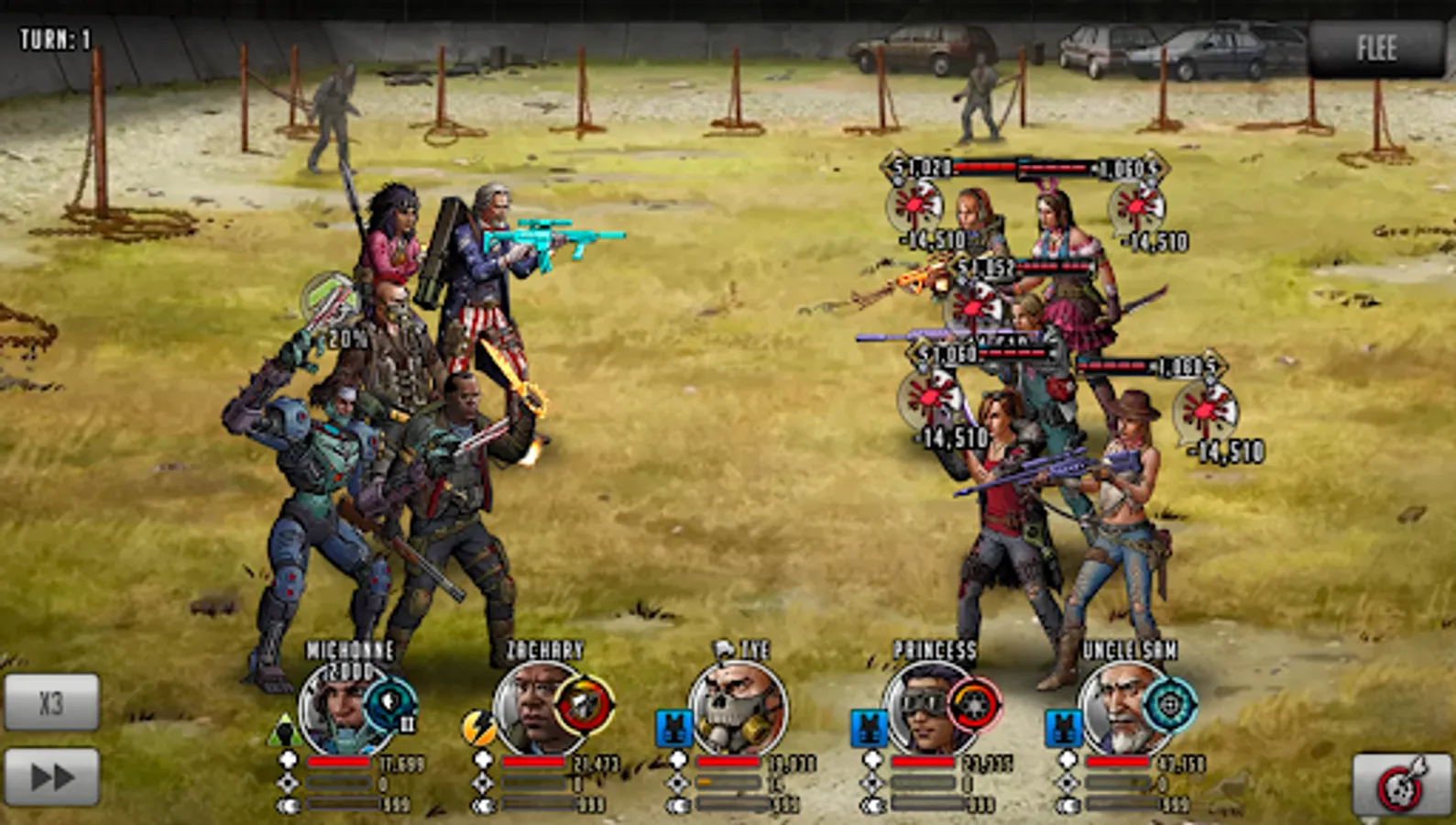 • Collect and customize new Survivors from The Walking Dead universe, each with their own specialized battle strategy!
