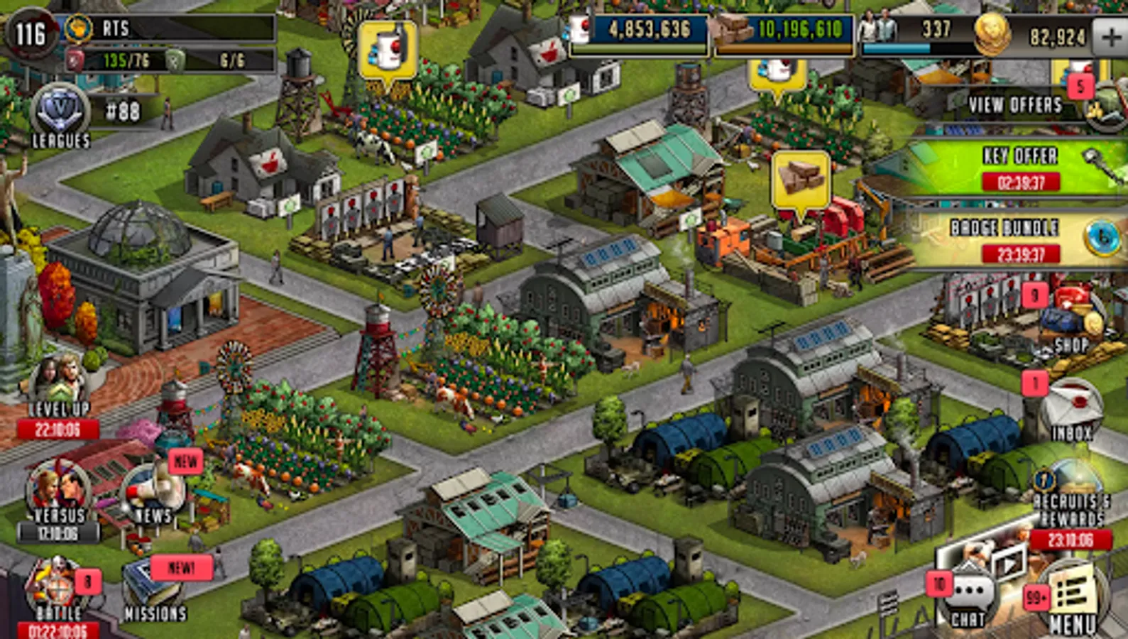 • Join allies in a faction to create a battle strategy and pool resources in the harsh world of The Walking Dead.