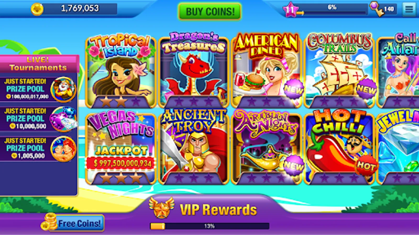 Play with friends in our massive daily tournaments, Explore HD-Quality Vegas slot machines, and enjoy our Daily Jackpot Events, bonus games, and free gifts!