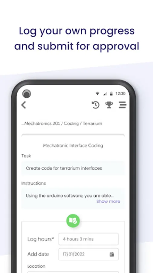 Using Conveya, you no longer have to rely on paper photocopies of logbook templates and occasional notebook entries. Simply open up the Conveya app on your device, select the category you want to add a progress record to, and send it for review. No pens, no other systems — just a fast and simple way to document your efforts and get on with your day..