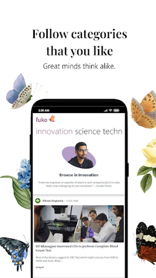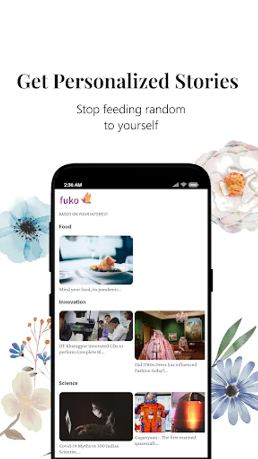 Fuko is an highly designed companion app or facts, trends, history and much more. We love to bring ideas and innovations from all around the world. Stop feeding random feeds to yourself and more customized and exclusive content by fuko creators. Here you will find new perspective for what you loved about most.