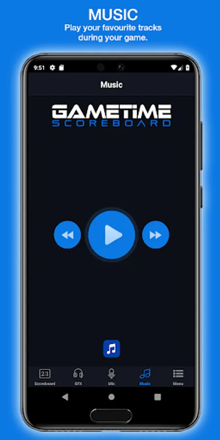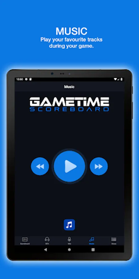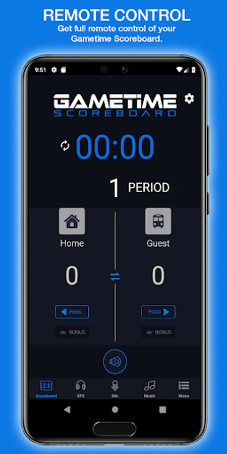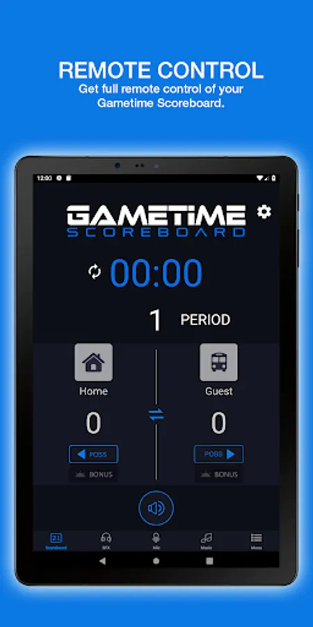 The Gametime Scoreboard app allows you to control your electronic scoreboard from a distance. Use your smart device to control the time and score. You can use the microphone feature to address the crowd or do the play by play announcing. You can also play your favorite tunes and upload or record your own stadium sound effects!