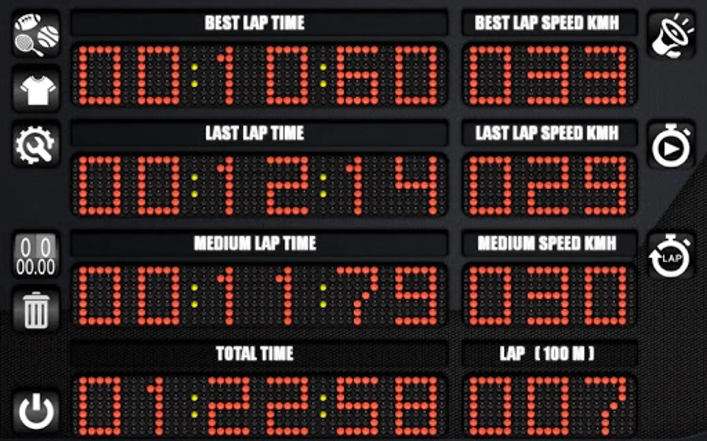 • Configurable match setup, times, laps, timeouts, fouls, points, sets...