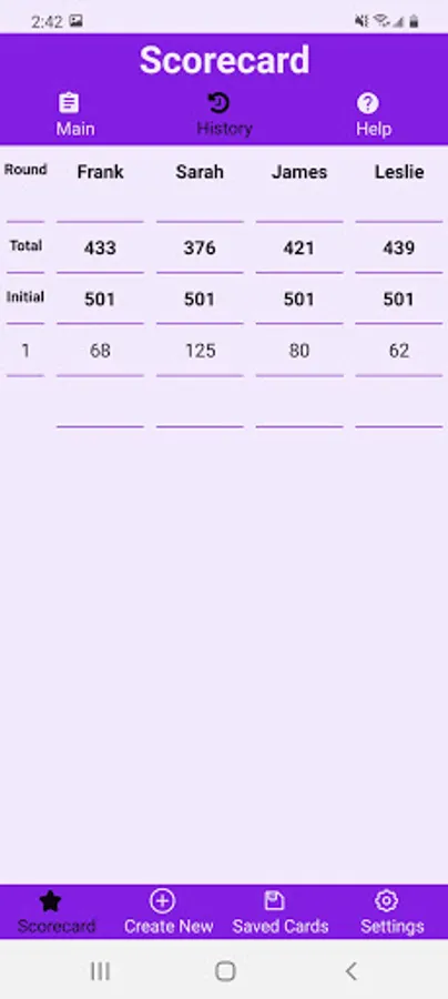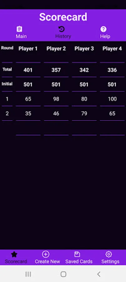 -The active scorecard is always saved, but you can save as many scorecards as you like and revisit them later