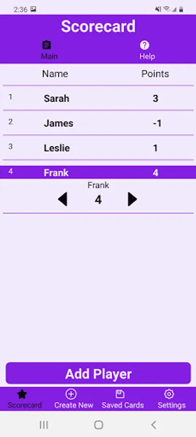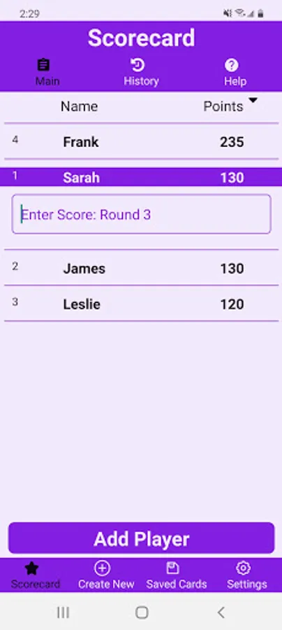 -Add or remove players as needed without losing the scores of other players.