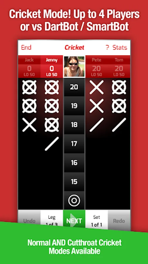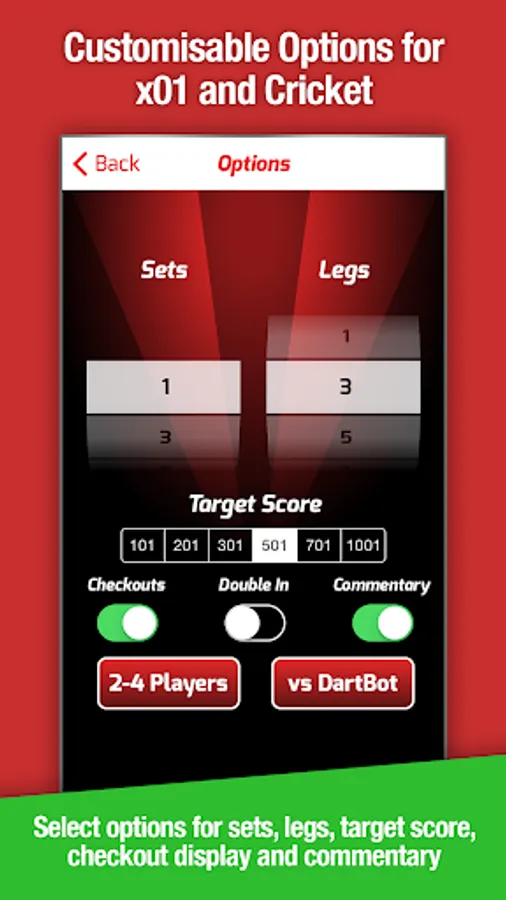 • Play Cricket, 101, 201, 301*, 501*, 701* and 1001* (* = unlocked after purchase)