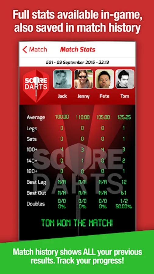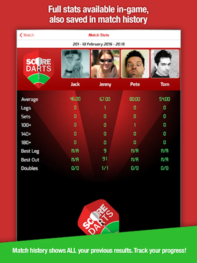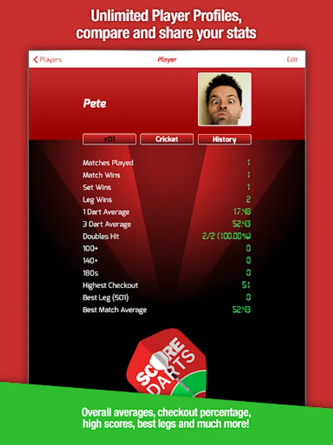 • Add unlimited player profiles and view detailed darts statistics for each player. Add player photos too.