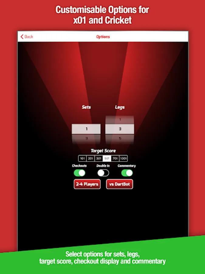 • Play against a fellow human or challenge SmartBot – the intelligent darts scorer opponent who adjusts to compete with your recent performance levels!