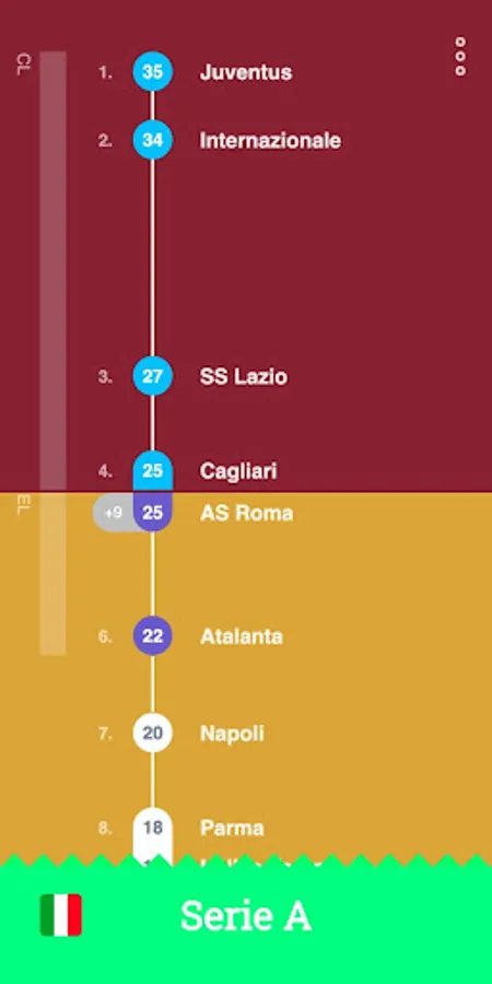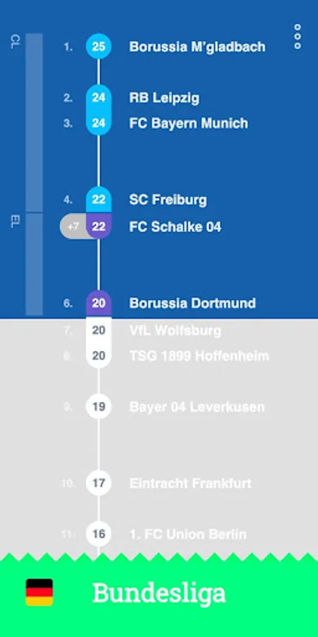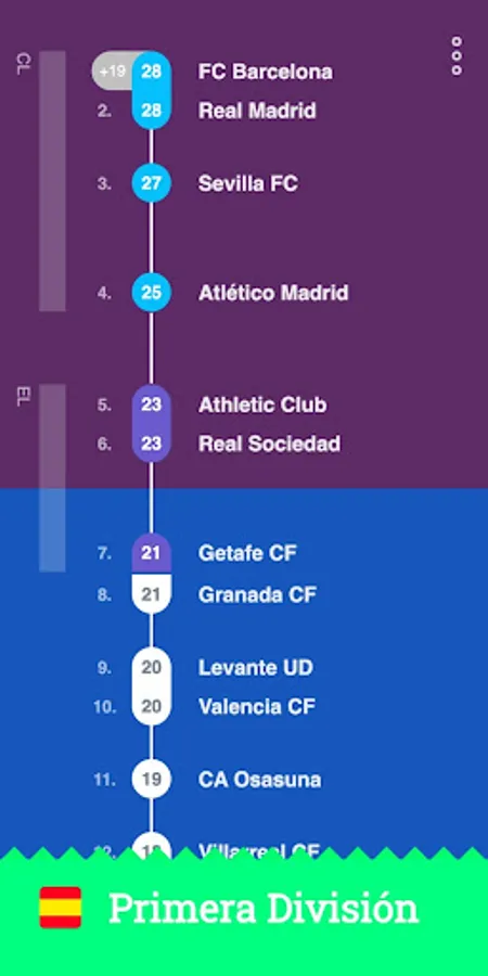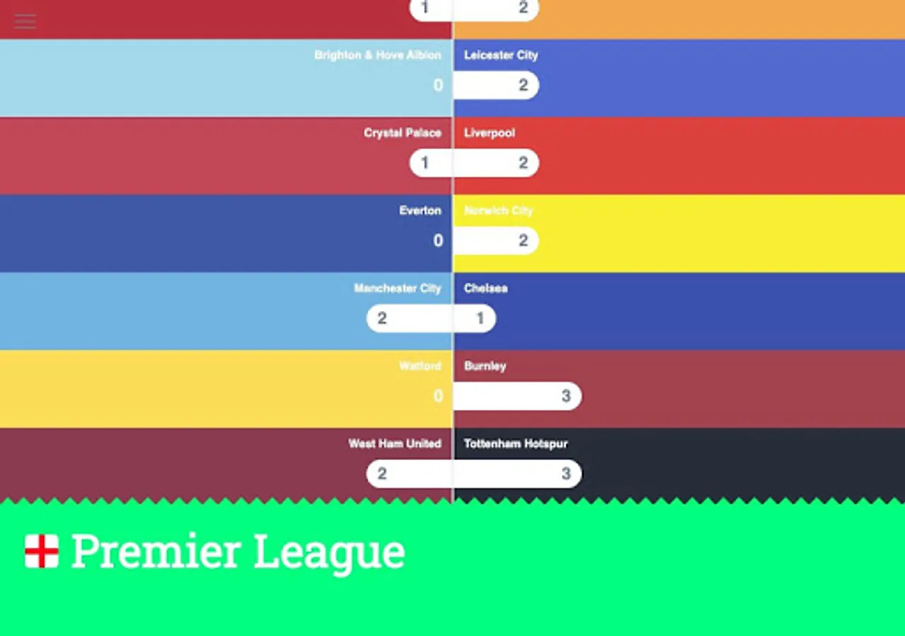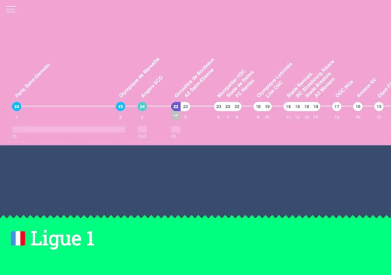 ScoreLawn shows you football (soccer) standings and fixtures in an organic and naturally mapped way. The scores are shown on a scale that visualizes the distance between each team to make them more comprehensive and easier to digest.
