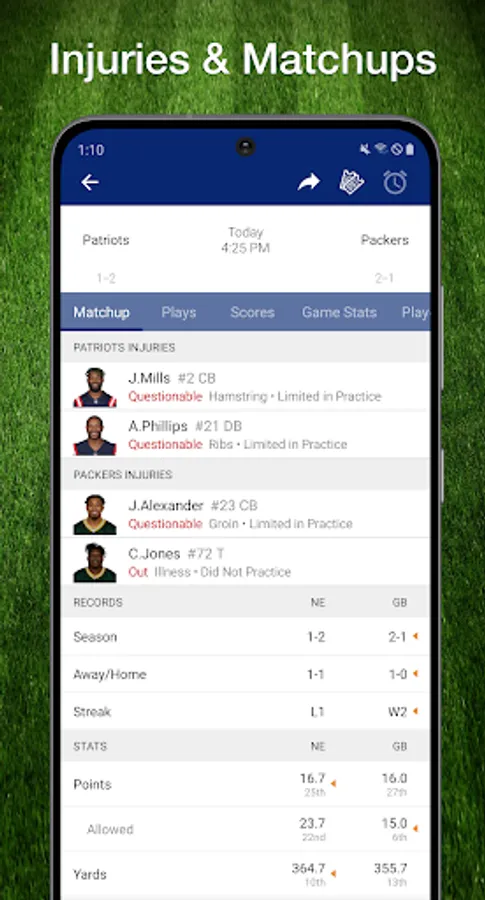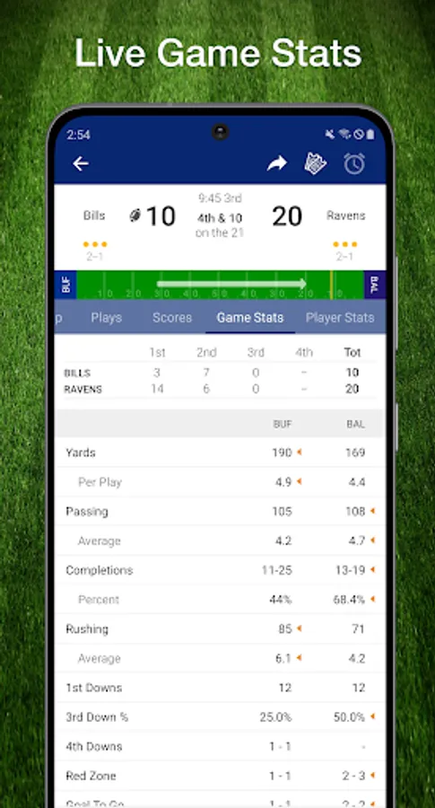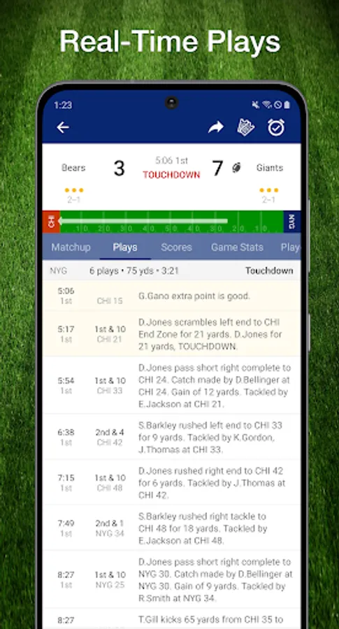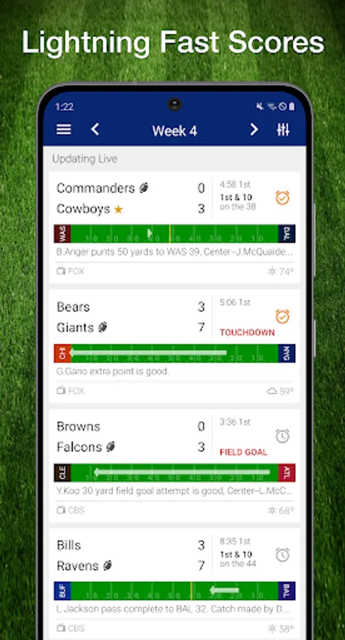 * Live football scores & real-time plays keep you on top of the NFL action!