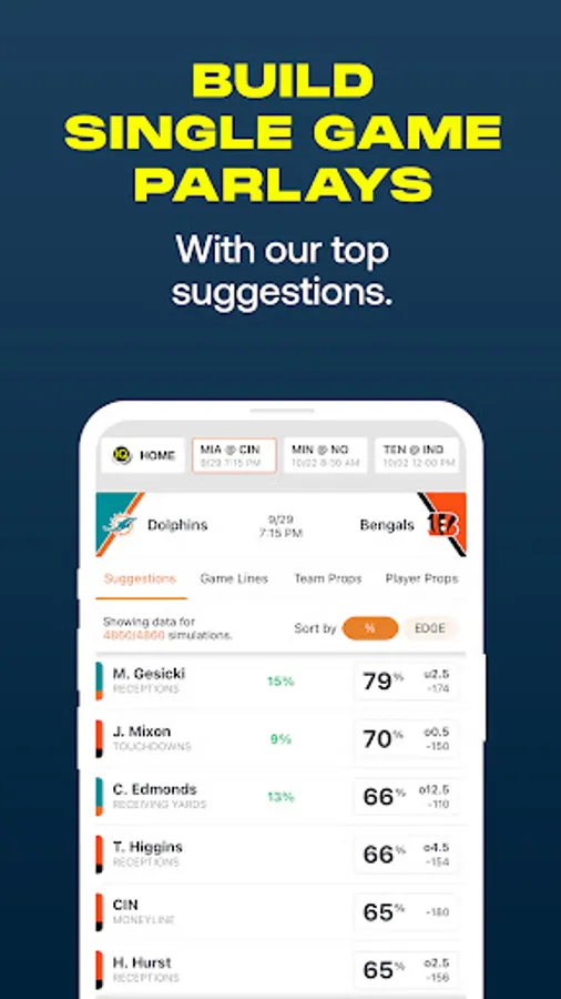 ParlayIQ is the easiest way to build great parlays and same game parlays for every game you care about. Powered by RotoGrinders and ScoresAndOdds exclusive projections, we run thousands of simulations to help you find the best bets available with our parlay calculator.