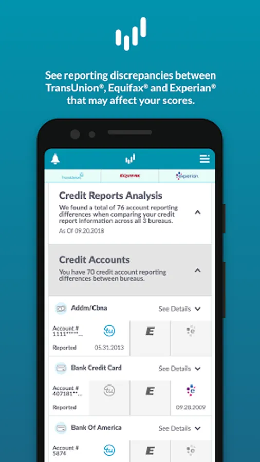 • Analyze your credit reports. See any Account Discrepancies we find when comparing your reports across all 3 bureaus.