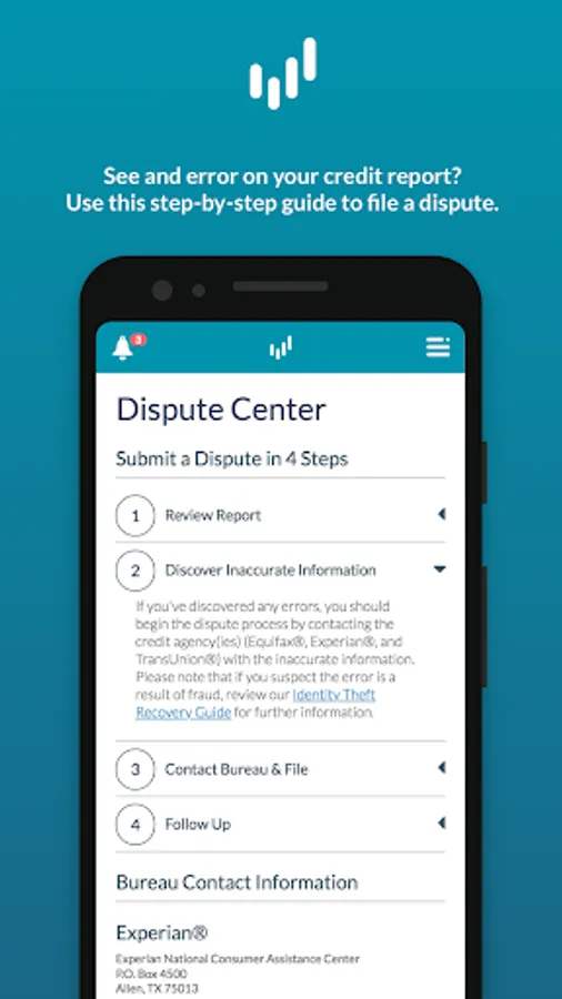 • Dispute credit report errors. File a dispute with all 3 bureaus using the Dispute Center step-by-step guide.