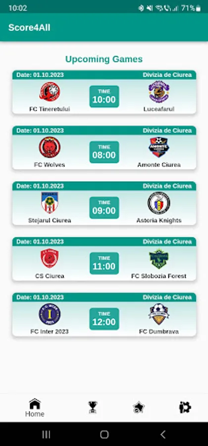 Score4All gives you the posibility to follow local competitions and get notifications about matches updates.