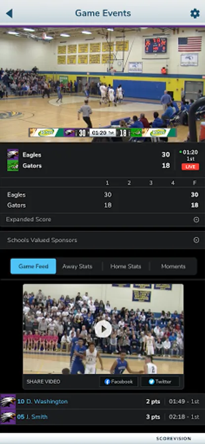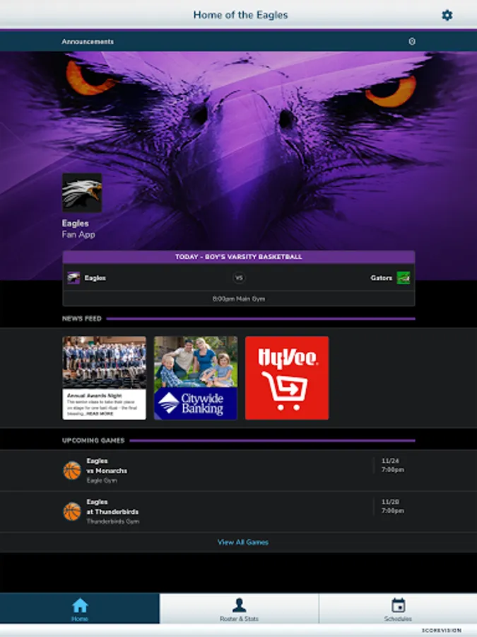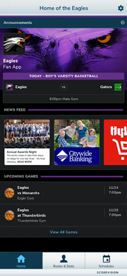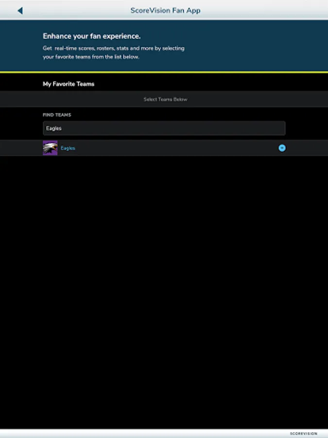 Download the ScoreVision Fan App to get real-time score updates, video highlights, live streams, and more. Simply choose your favorite team that's using ScoreVision software, then check scores, watch highlights and streams, and see rosters, stats, announcements and more with our free Fan App.