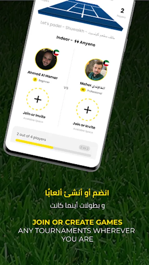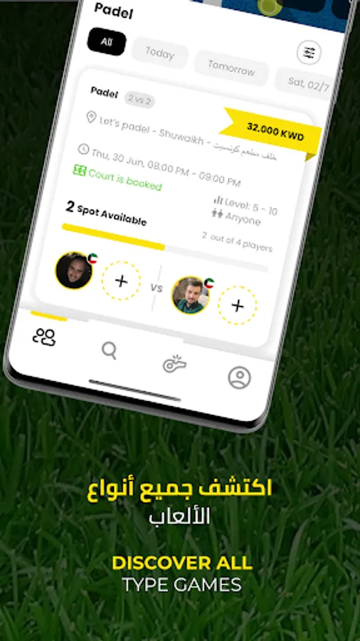 • Find players and games near you in the app