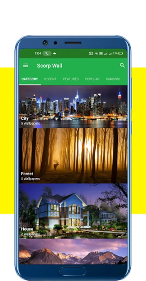 > The app provides a rich list of categories to pick the best Wallpapers of your choice