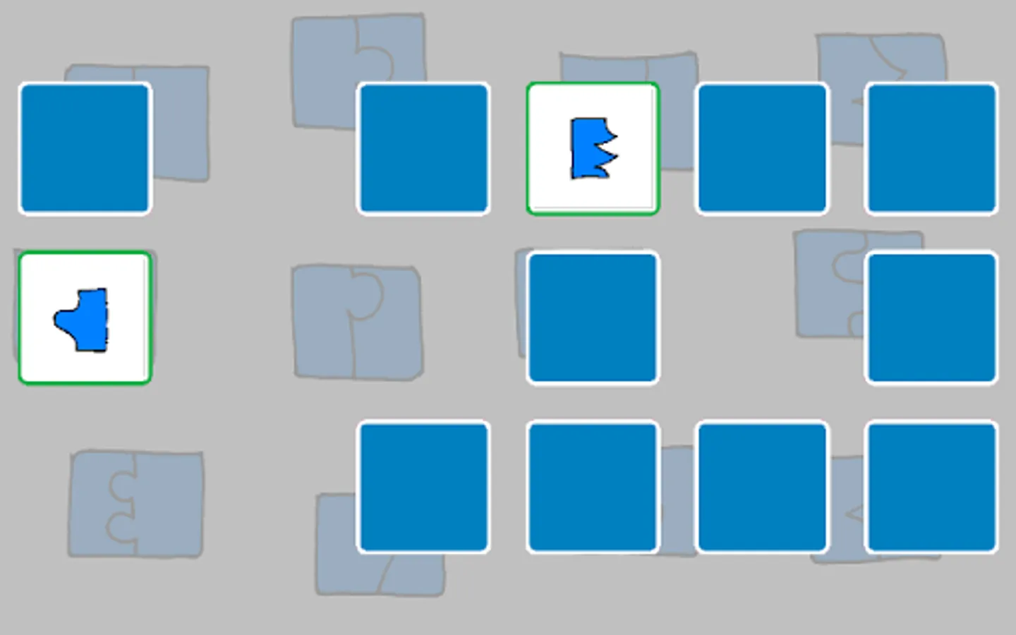 - Puzzle memory : Match 2 cards where the puzzle pieces fit together like a small 2-piece puzzle!