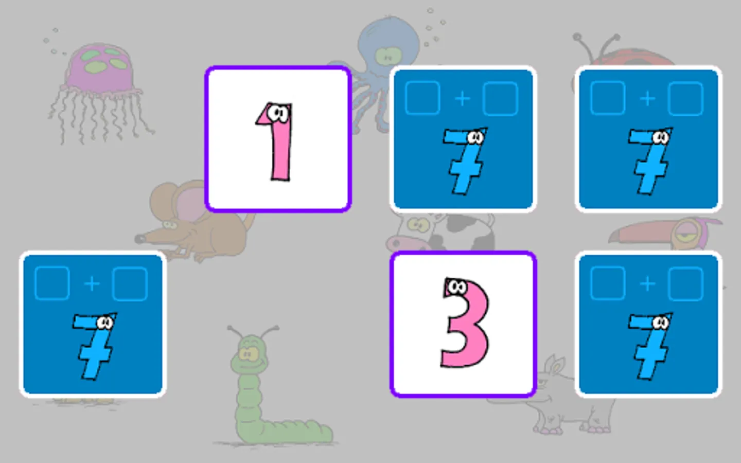 - Sum memory : Match 2 cards that sum up to a certain amount. Learn some math!
