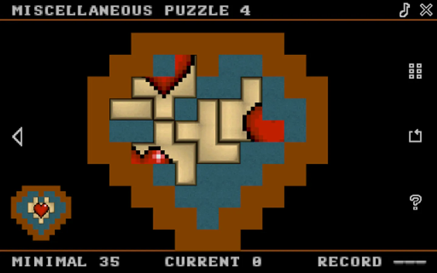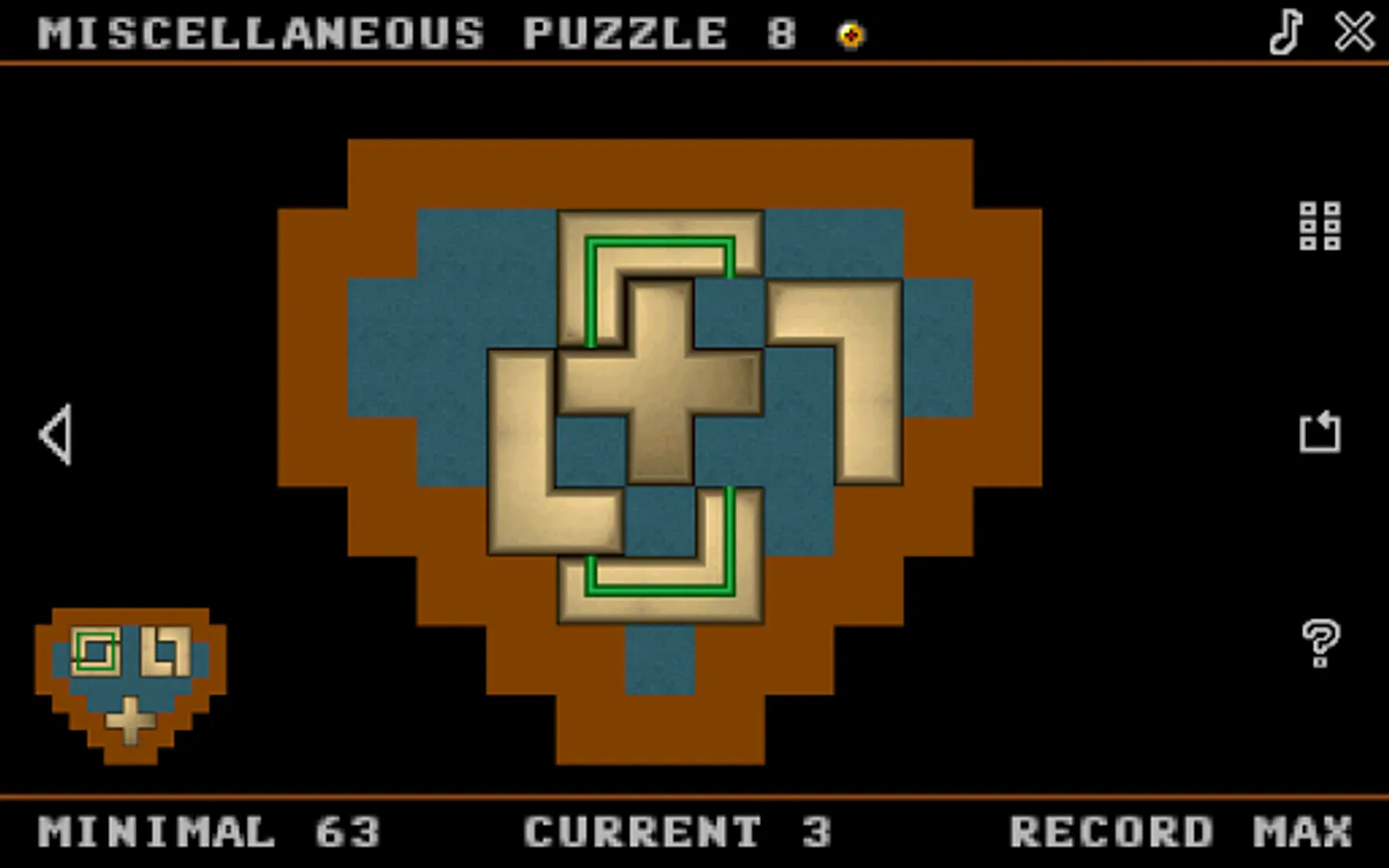 - Number of moves the puzzle was completed in, is saved. Try to solve each puzzle in the minimal number of moves for an achievement gold medal