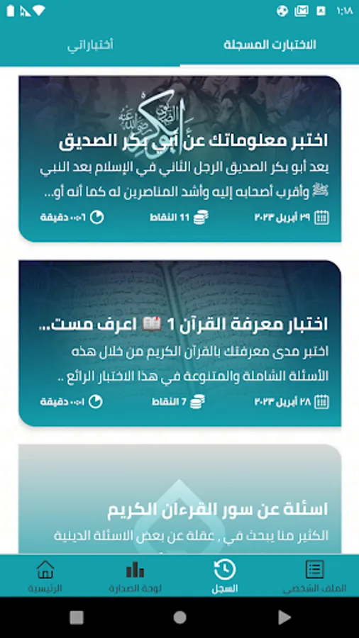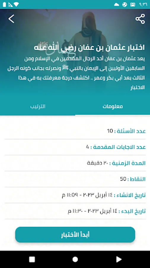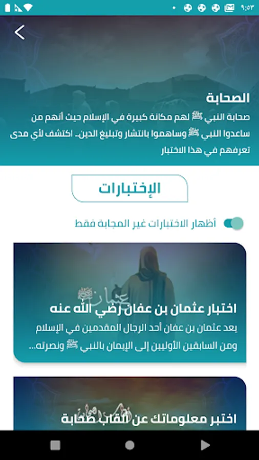 بفضل عدة أقسام اختبار تشمل مواضيع إسلامية مختلفة، فإن متنافسون مثالي لأي شخص يرغب في تعلم المزيد عن الدين الجميل الإسلامي.
