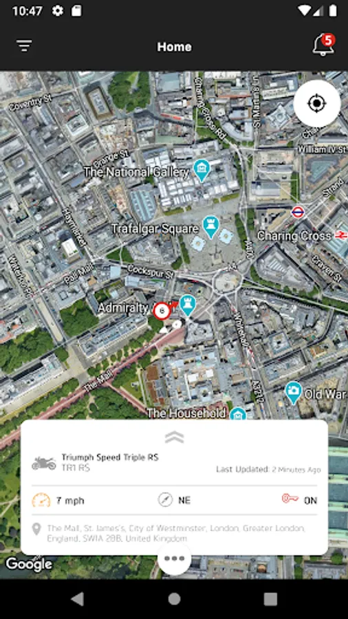 Once installed onto your smartphone, this app allows you to remotely access and manage the full range of Triumph Track+ security, safety and convenience features when used in conjunction with the Triumph Track+ website functionality. At any time, you may set your own levels of security alerts, view journey history data and maps, change tracking system user modes, check bike location, enable/disable alert types and select account management and preferences.