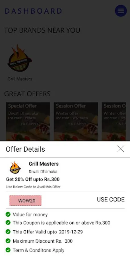 Using Discount Bro App, you can check Coupons for food & beverages online from top brands and restaurants near & around you. We provide a facility to users of the app to get special Coupons from near brands like Grill Master, Mr. Krisper and more. Exciting bit?