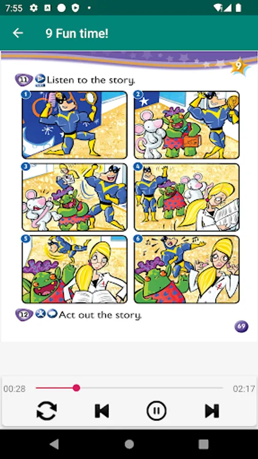 1-2 class hours to learn grammar in listening. 3-4 class hours to learn vocabulary while reading. In the 5th class, the language output is carried out through the activities of pronunciation and speaking and writing. In the 6th class in volumes 5-6, new story characters are introduced, and the learned language points are reproduced in a new situation.