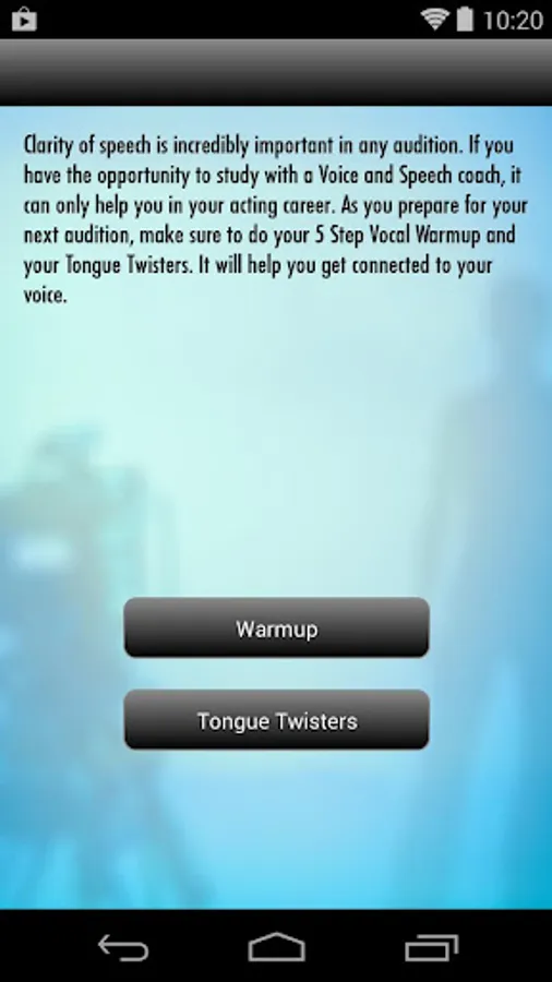 3. VOICE & SPEECH exercises and tongue twisters to vocally warm you up for every audition.