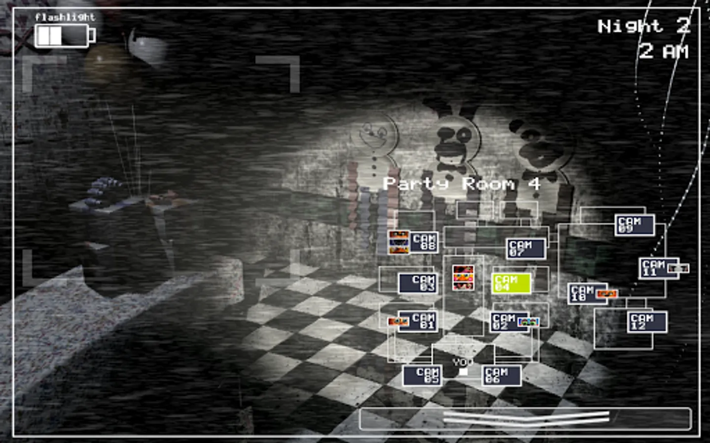 As the new security guard working nights, your job is to monitor cameras and make sure nothing goes wrong after-hours. The previous guard has complained about the characters trying to get into the office (he has since been moved to day-shift). So to make your job easier, you've been provided with your very own empty Freddy Fazbear head, which should fool the animatronic characters into leaving you alone if they should accidentally enter your office.