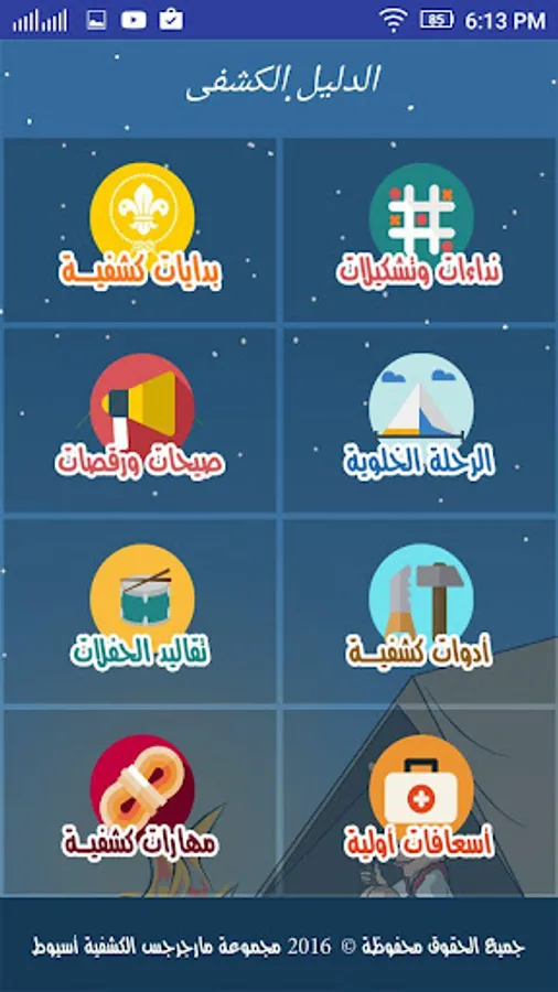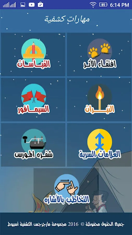 تطبيق كشفي. عن المهارات المختلفة للكشافة .التطبيق إصدار مجموعة مارجرجس الكشفية