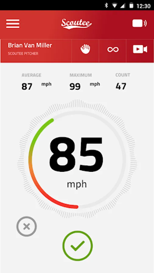 Measure the speed of your pitching, and select various additional parameters, such as pitch type, pitch location, and result of the pitch. Record a video of your technique with pitch data overlay. With SCOUTEE smart radar gun you can instantly access and review months of training data and videos on your phone or tablet and track your progress over time. Share your annotated videos and performance data with friends, coaches and scouts worldwide.