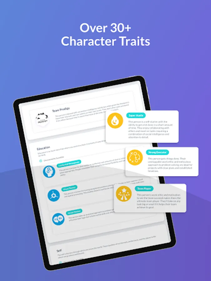 Scoutible's technology helps you discover your real-world superpowers. The game goes deeper than assigning you surface-level characteristics and unlocks your hidden talents and strengths, such as: