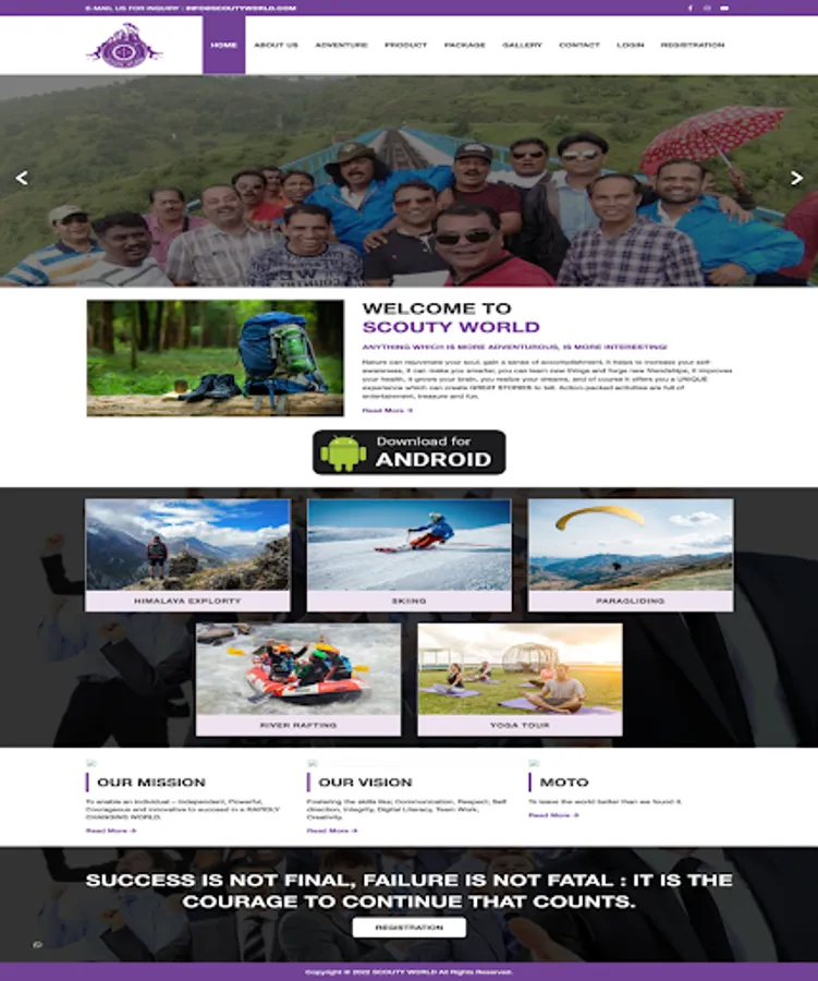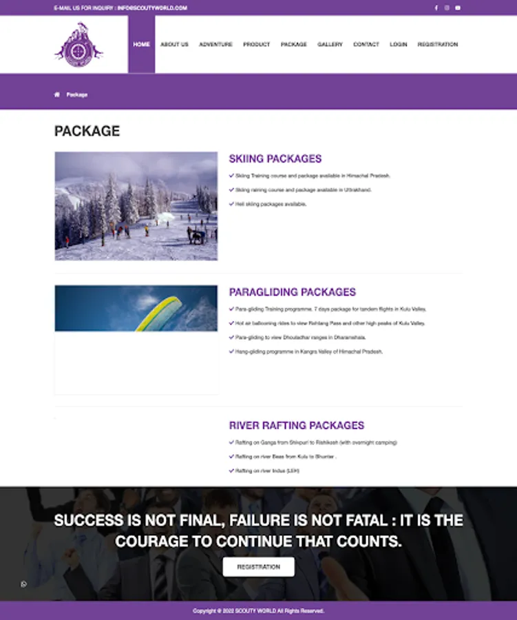 Scouty World best adventures trekking services offering HIMALAYA EXPLORTY, SKIING PACKAGES, PARAGLIDING PACKAGES, RIVER RAFTING PACKAGES.