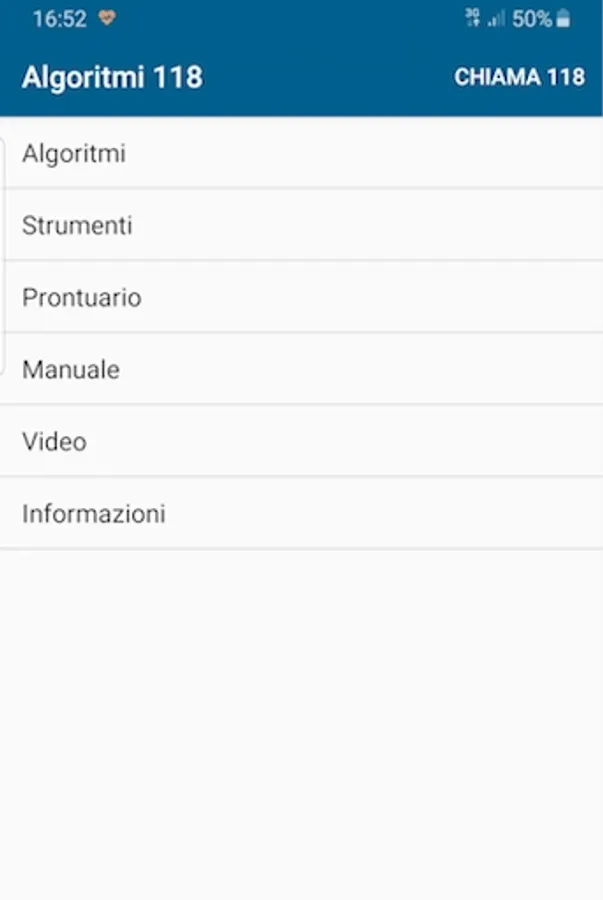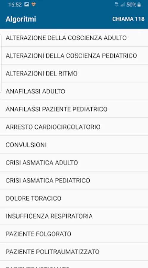 Within the application, in addition to the clinical assistance algorithms, there are the necessary tools, not only for the use of the algorithms themselves, but a useful guide to deal with the various emergency situations by the healthcare personnel 118.