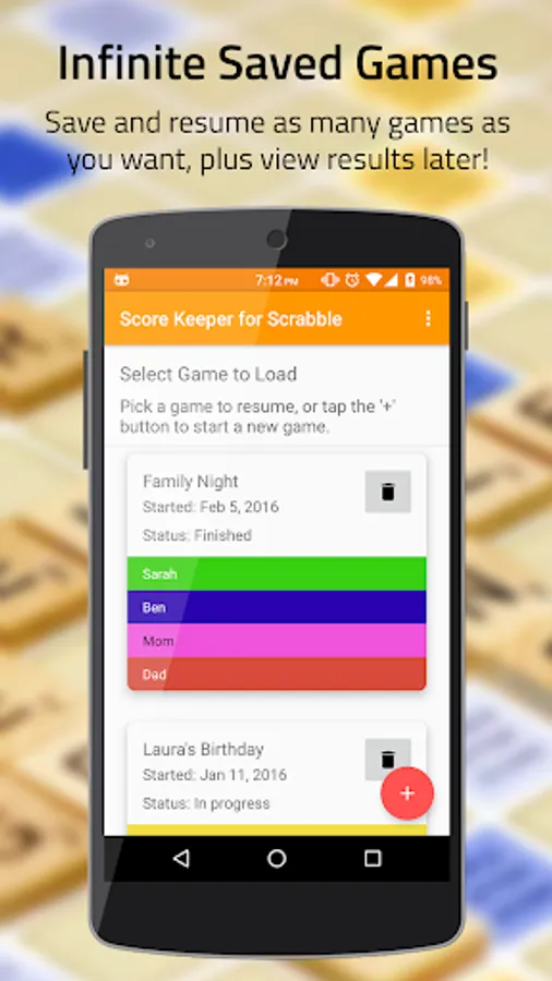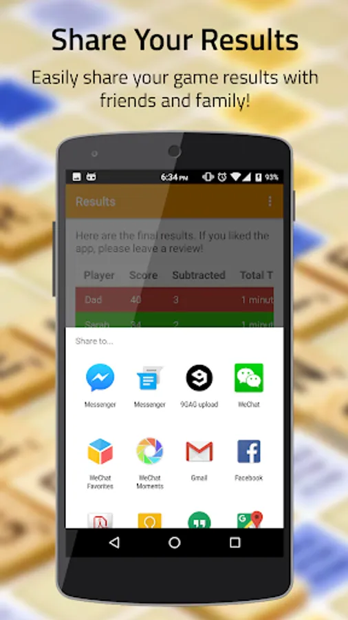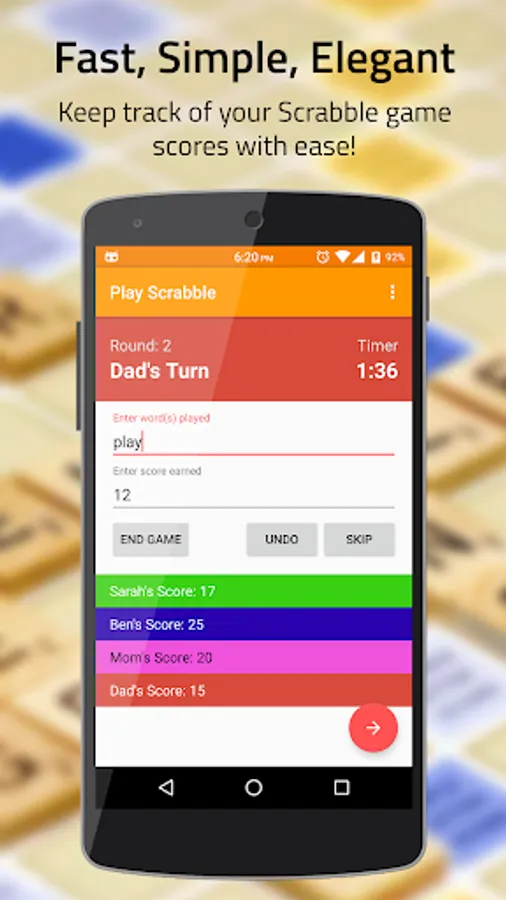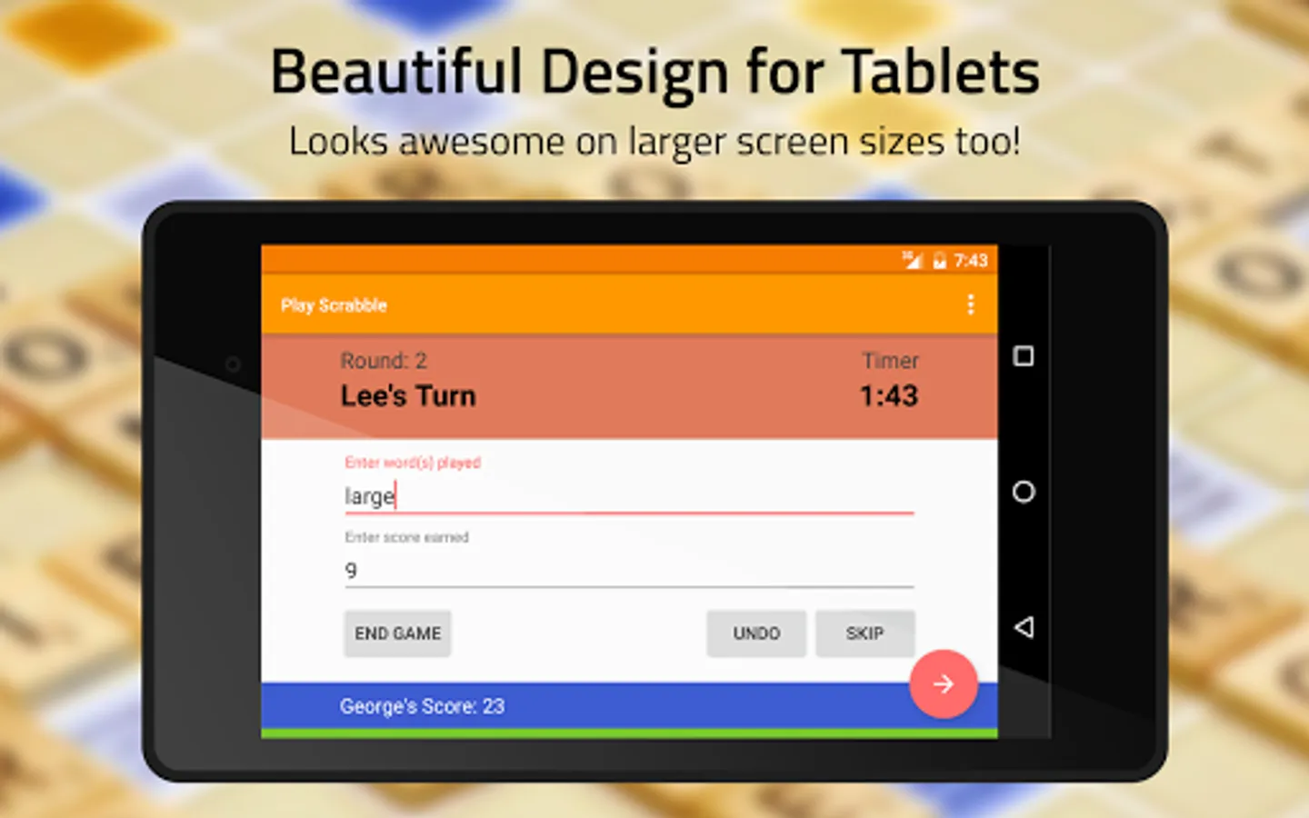 Keep track of your scores in Scrabble with ease, and share your results with friends and family!