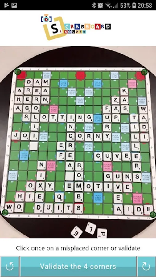 Concerning the recognition of the board letters, if needed, you can correct the value of a square.