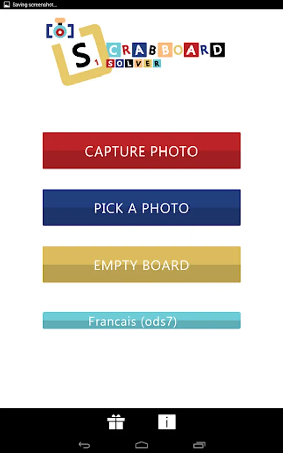 The application can be used to cheat at scrabble threw screenshot of your mobile app but it is not the purpose of this app. It has been mainly developed to help you finding the best word in solo mode by giving you some clues. Or it can be used in multiplayers mode with a physical scrabble board with people agreeing to check to best possible solution in certain configuration.