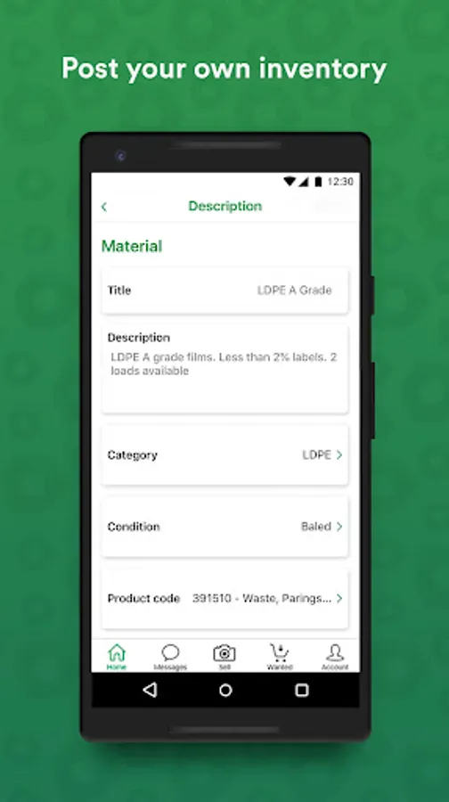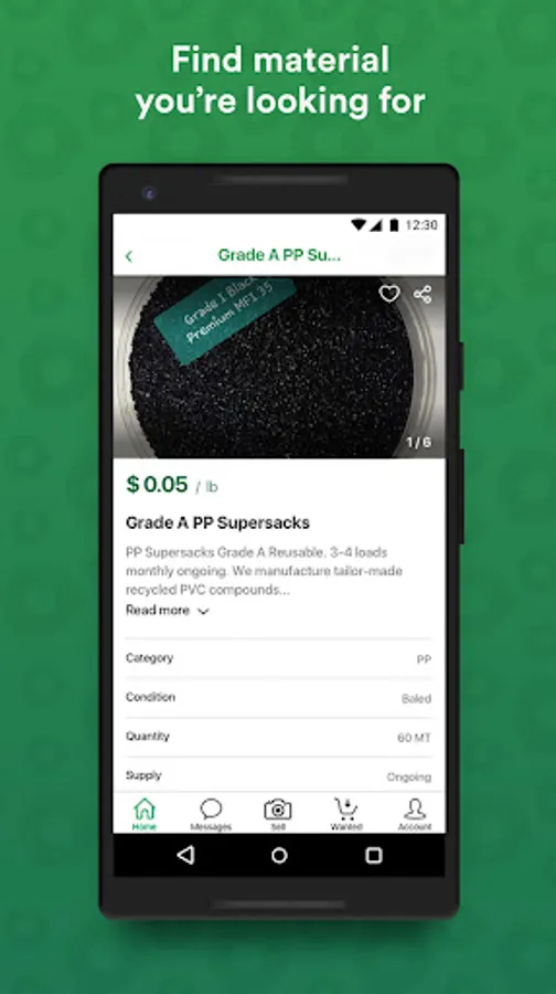 Our marketplace benefits sellers because it allows you to connect directly with buyers from around the world to find out exactly how much your materials are worth and negotiate a deal on the go. Creating a new listing can be done from your phone in less than a minute.