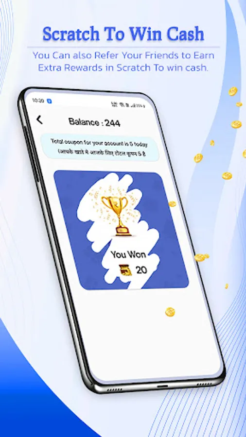 You will get Daily 20 Scratch Card and 20 spins and more features So you will Scratch Every 40 Coupons and get Chance to win and real cash.