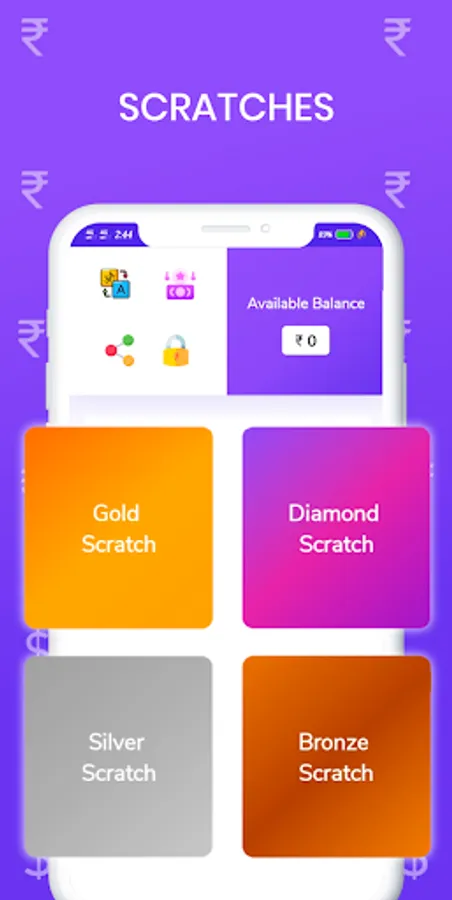 In this app app include four types of scratch card 1. Gold card, 2. Diamond Card, 3. Silver card, 4. Bronze Card and users can play any scratchcard coupon and luck by chance to win.