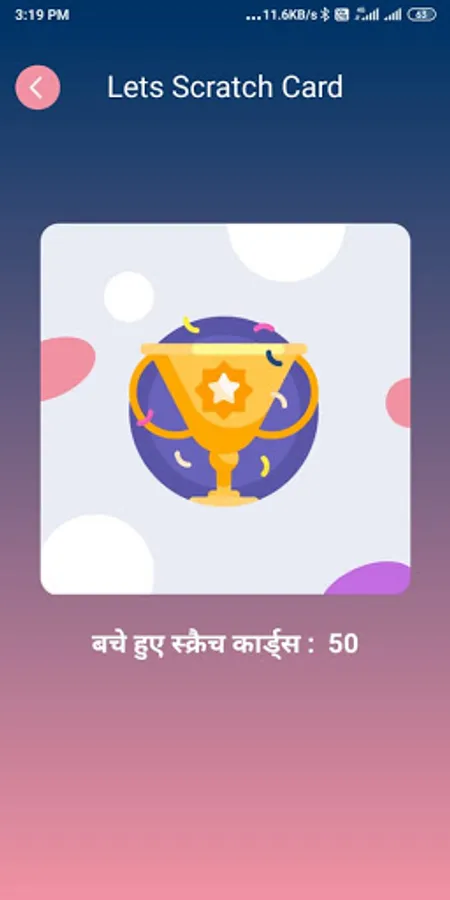 Scratch Cards Are Depends On The User's Luck. Points In Cards Opens Randomly. In Scratch and Win Real Cash App You Will Get Unlimited Scratch Cards In Whole Days But We Can Be Set Limit Of Scratch Cards in Future. Users Can Be Get More Points As A Gift If User Will Refer Your Friend and Families.