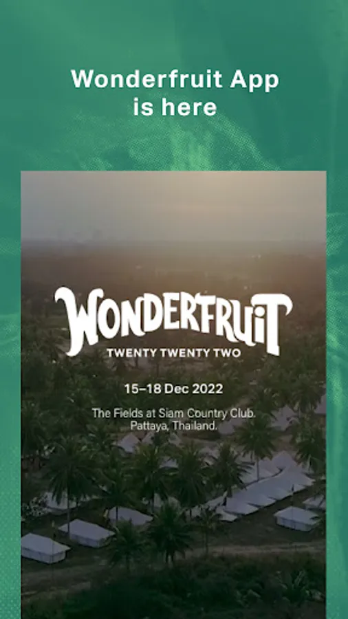 Welcome to the official app for Wonderfruit 2022, an exploration of wonder through art, music, culture & nature from 15 to 18 December.