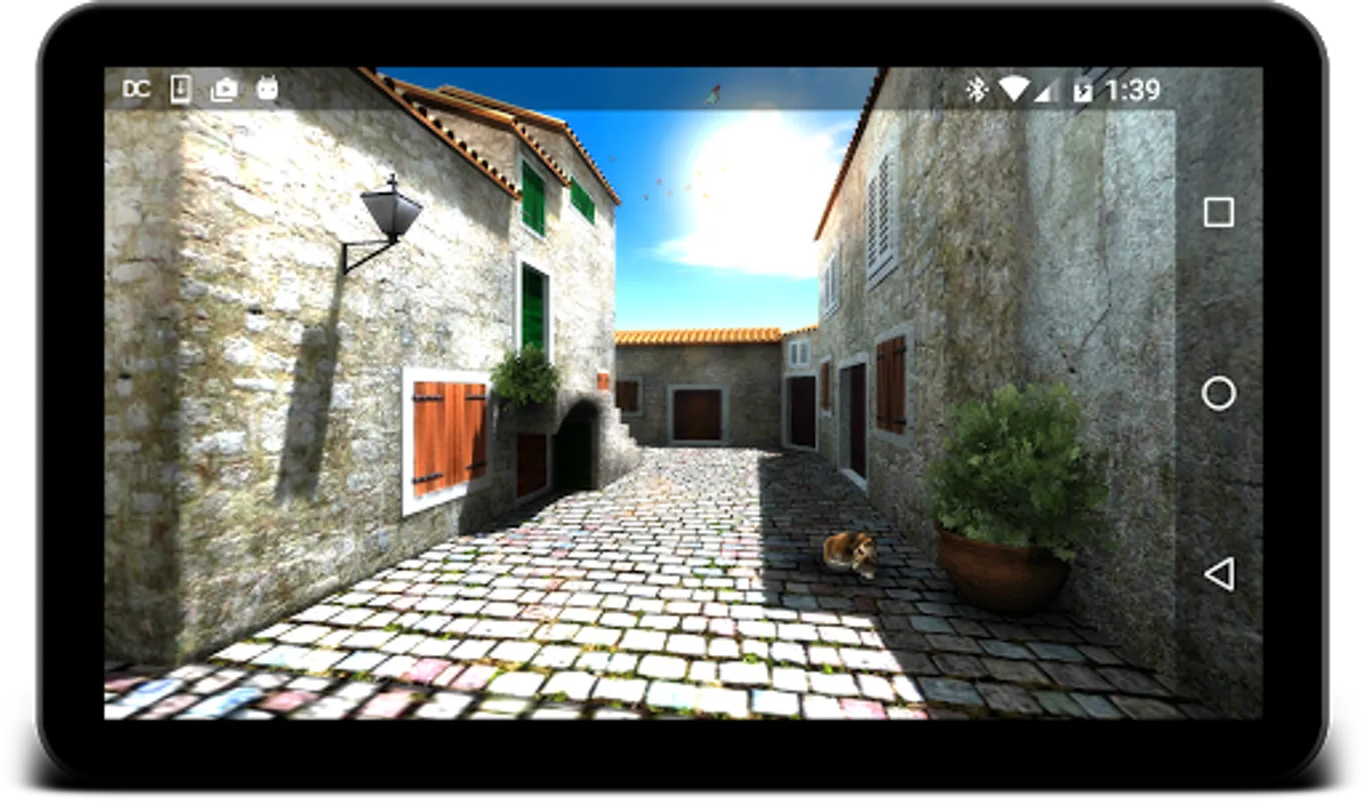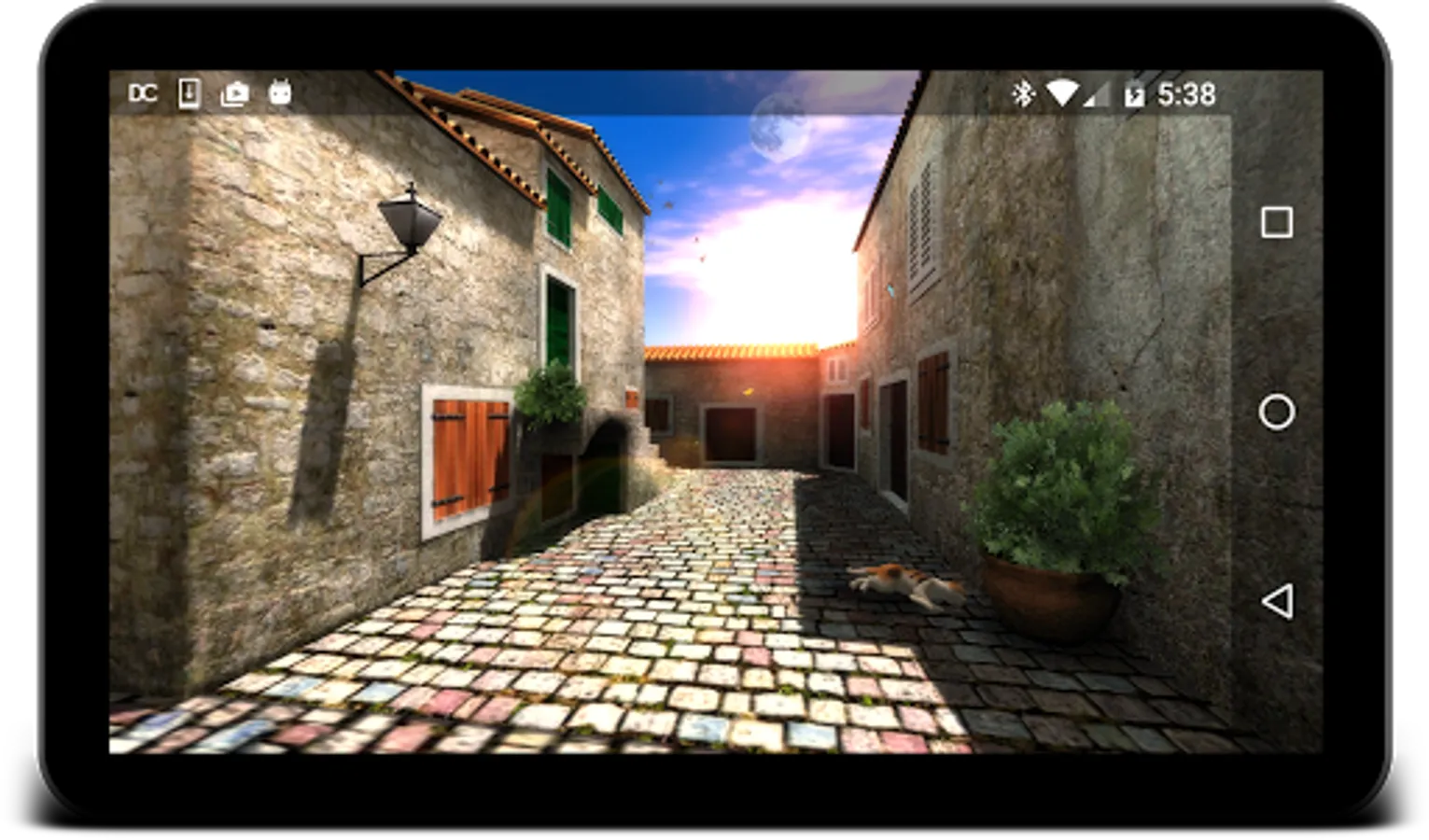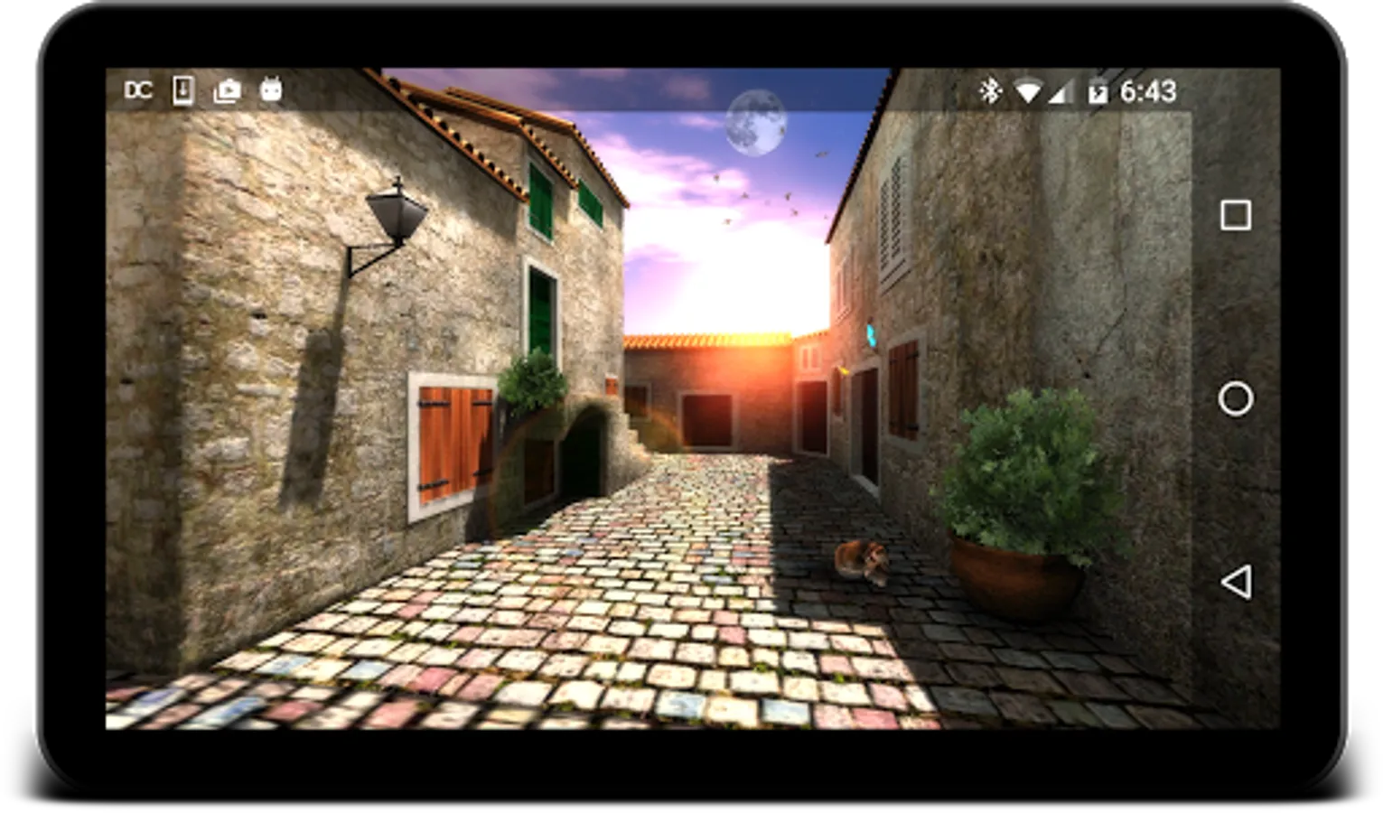Enjoy a view of a European street, almost a 1000 years old, from sunrise through the night, with Birds, Butterflies, Fireflies, and, of course, (every European town must have) a lazy Cat!
